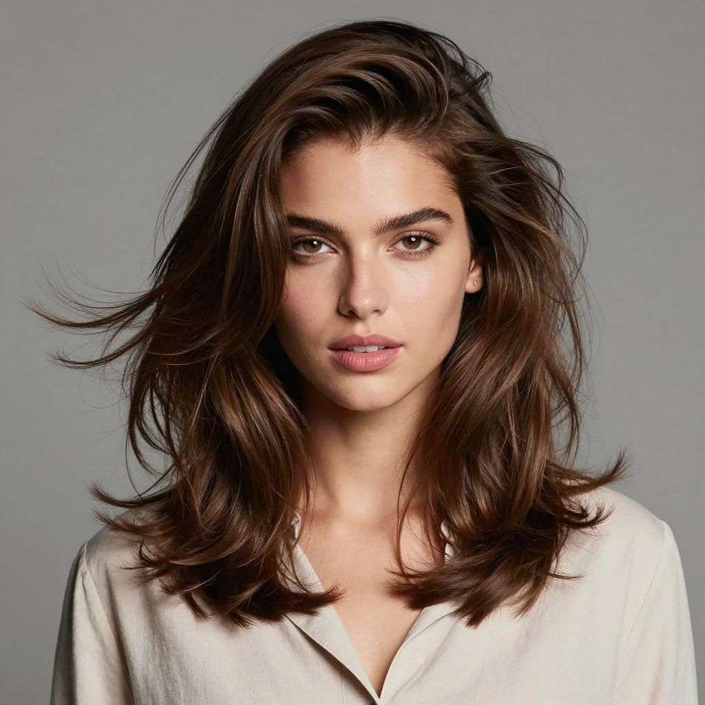 • Optional Variations: Add feathered bangs for softness