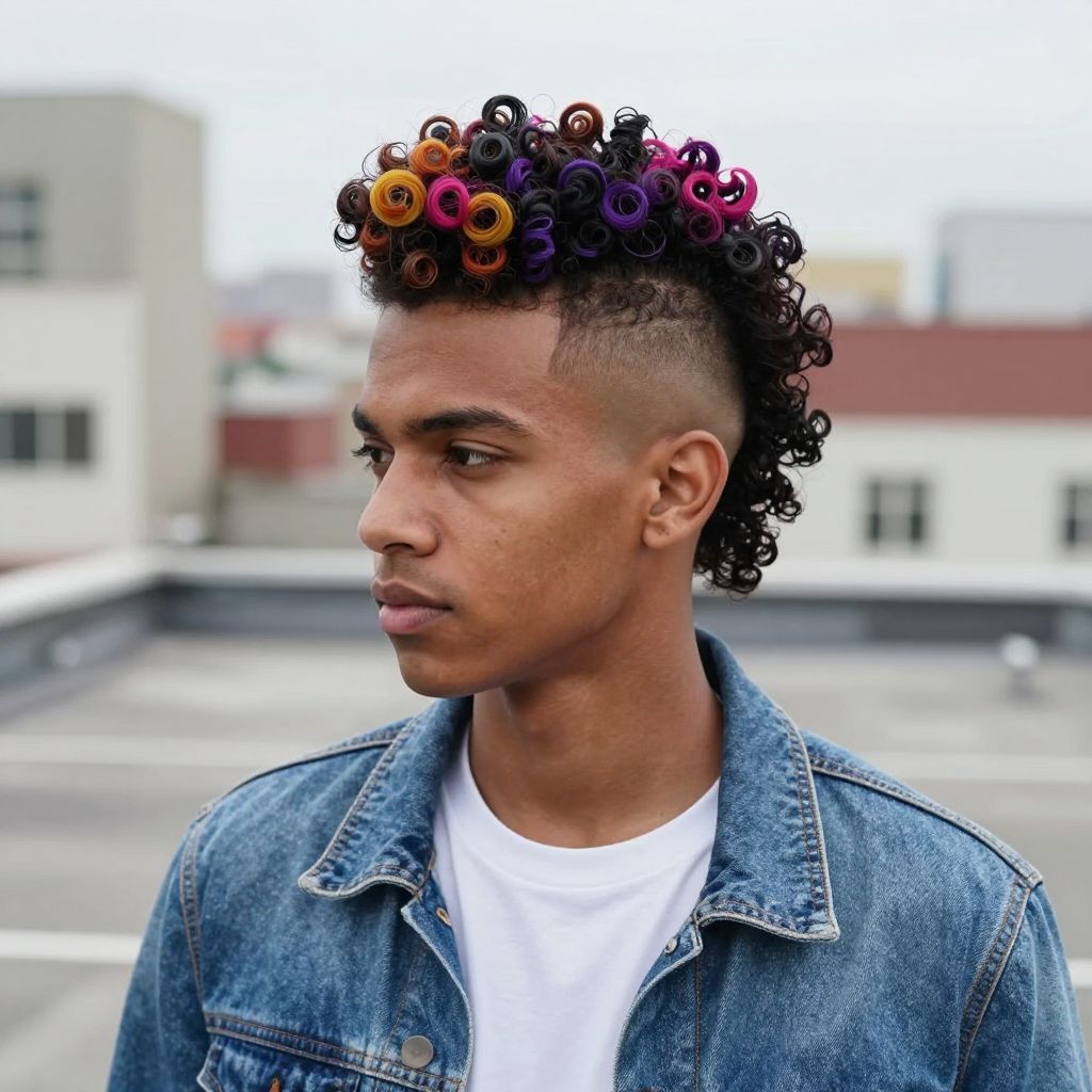 The mohawk says “I mean business”. Long center curls rise proudly while sides stay bare.