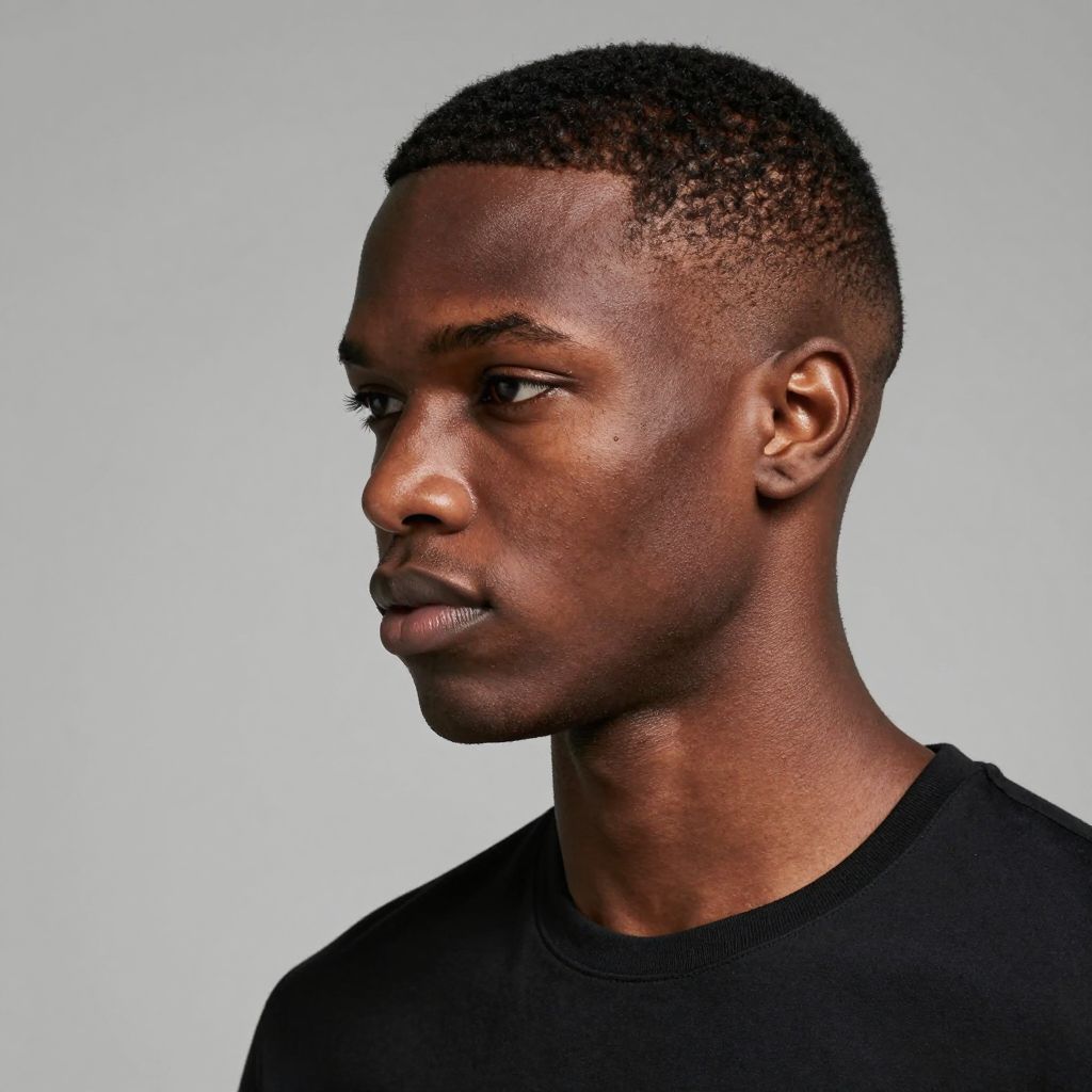 The buzz cut keeps things as easy as they get. Every strand sits the same, creating sharp simplicity.