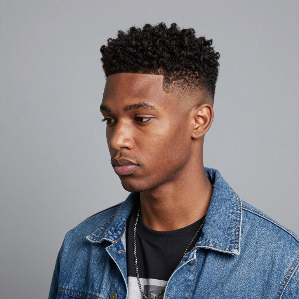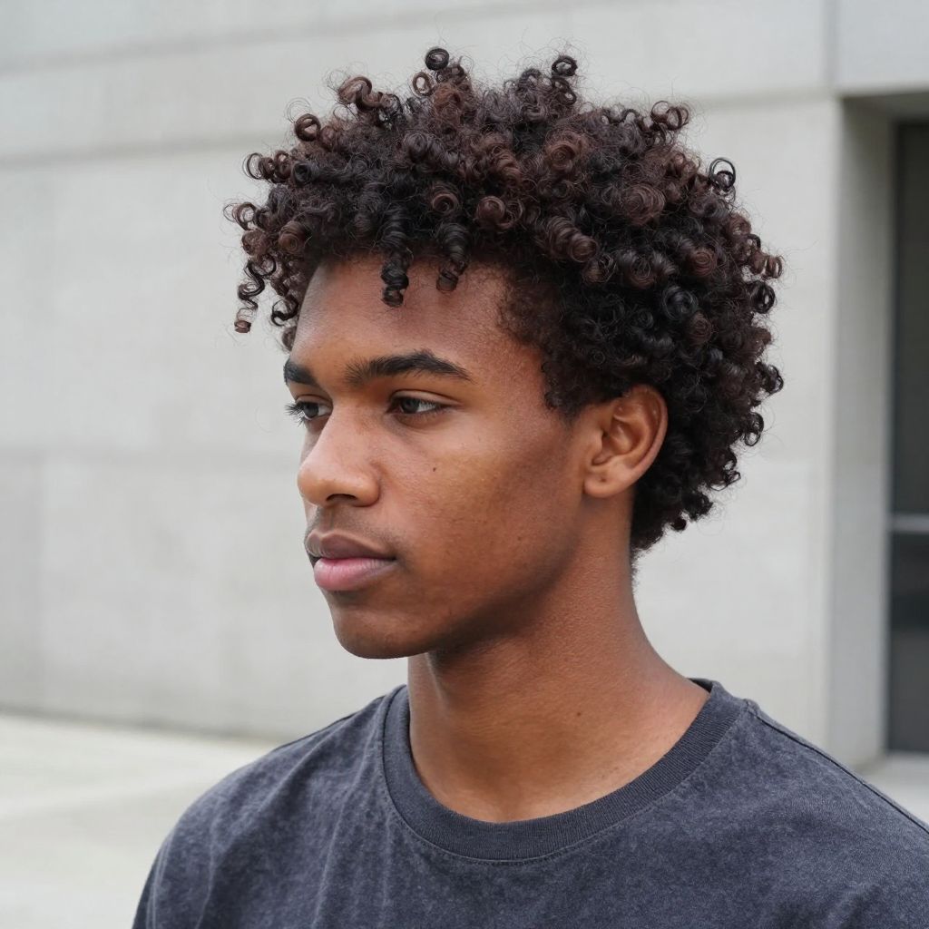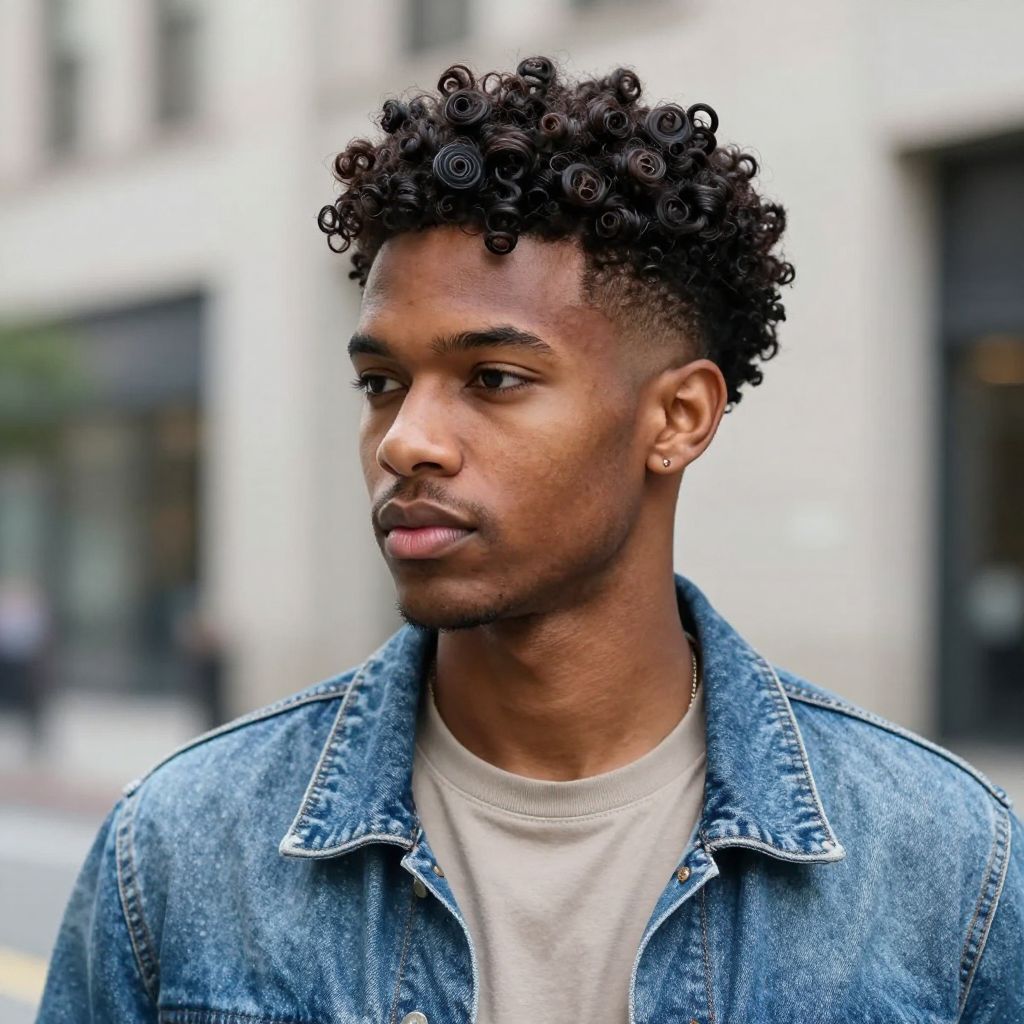 This style mixes structure with natural texture. The low fade keeps it neat while the curls on top create volume and bounce.