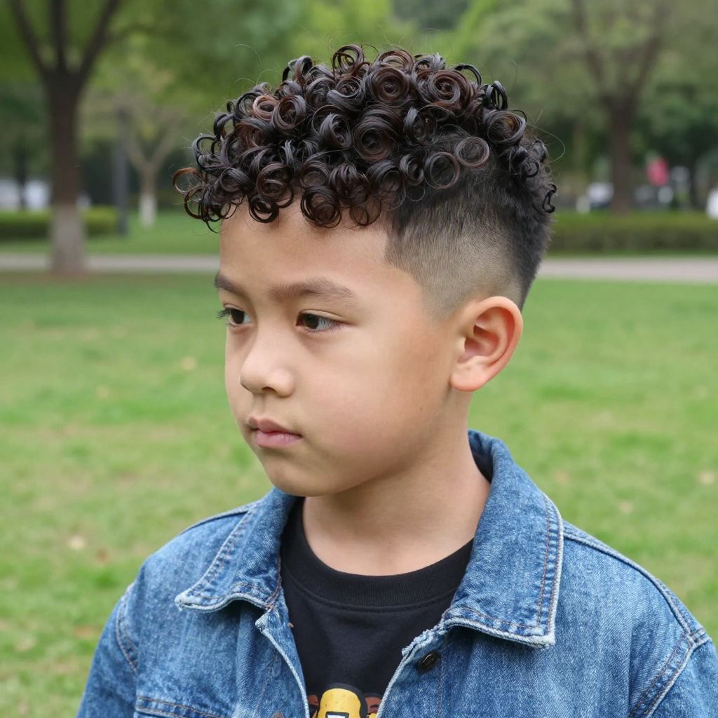 The curly top fade celebrates curls with shaved or faded sides. It draws focus to a defined textured top.