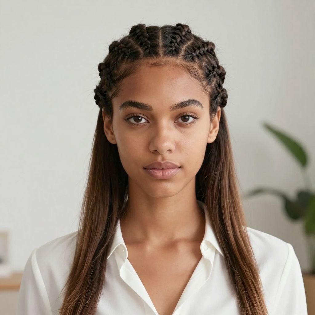 The twists blend with the base rows, offering movement without losing neatness. It is discipline meeting fun in one hairstyle.
