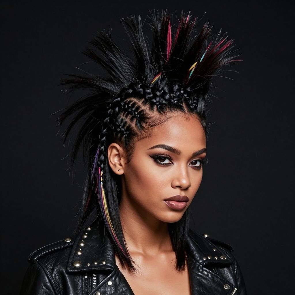 The braided mohawk delivers sheer power. Braided sides pull cleanly inward, leaving height and drama through the center.