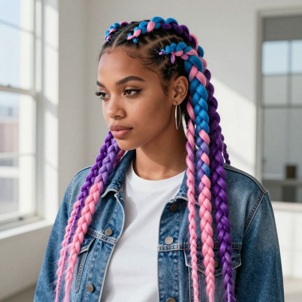 You can try pastel shades for softness or vibrant tones for energy, and they all pop against the structured braid pattern.