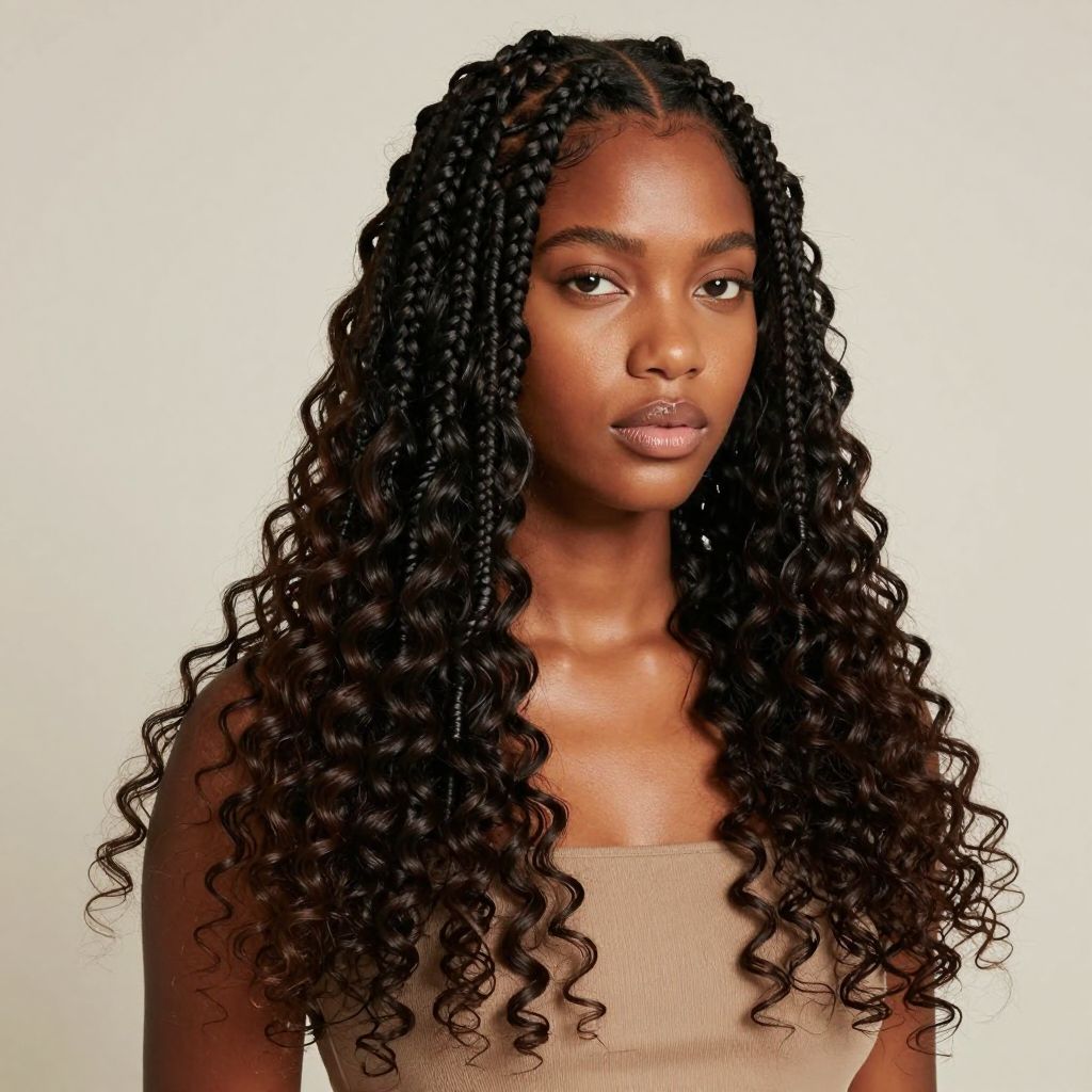 The curls create natural volume and make the braids appear fuller and more dynamic.