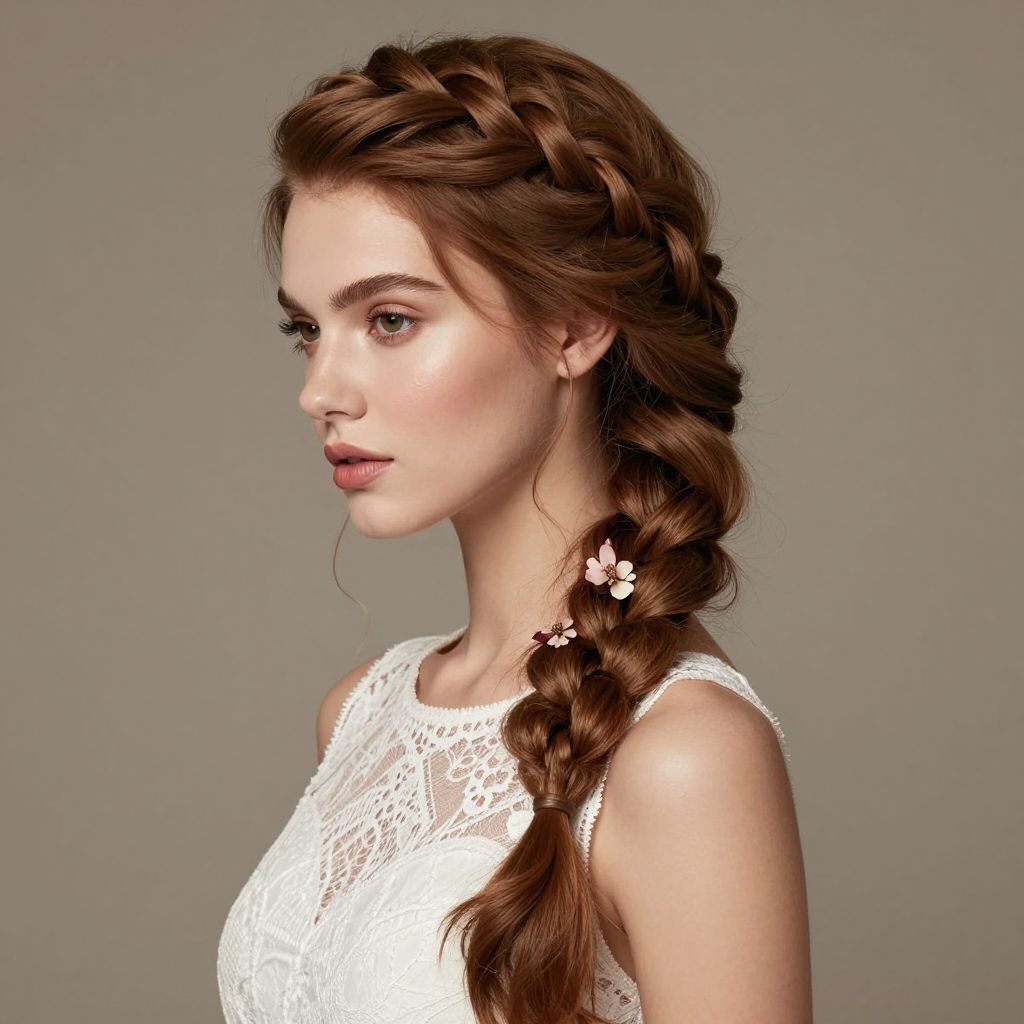 The side braid looks charming and cozy all at once. Sweep hair over your shoulder and braid loosely for an effortless look.