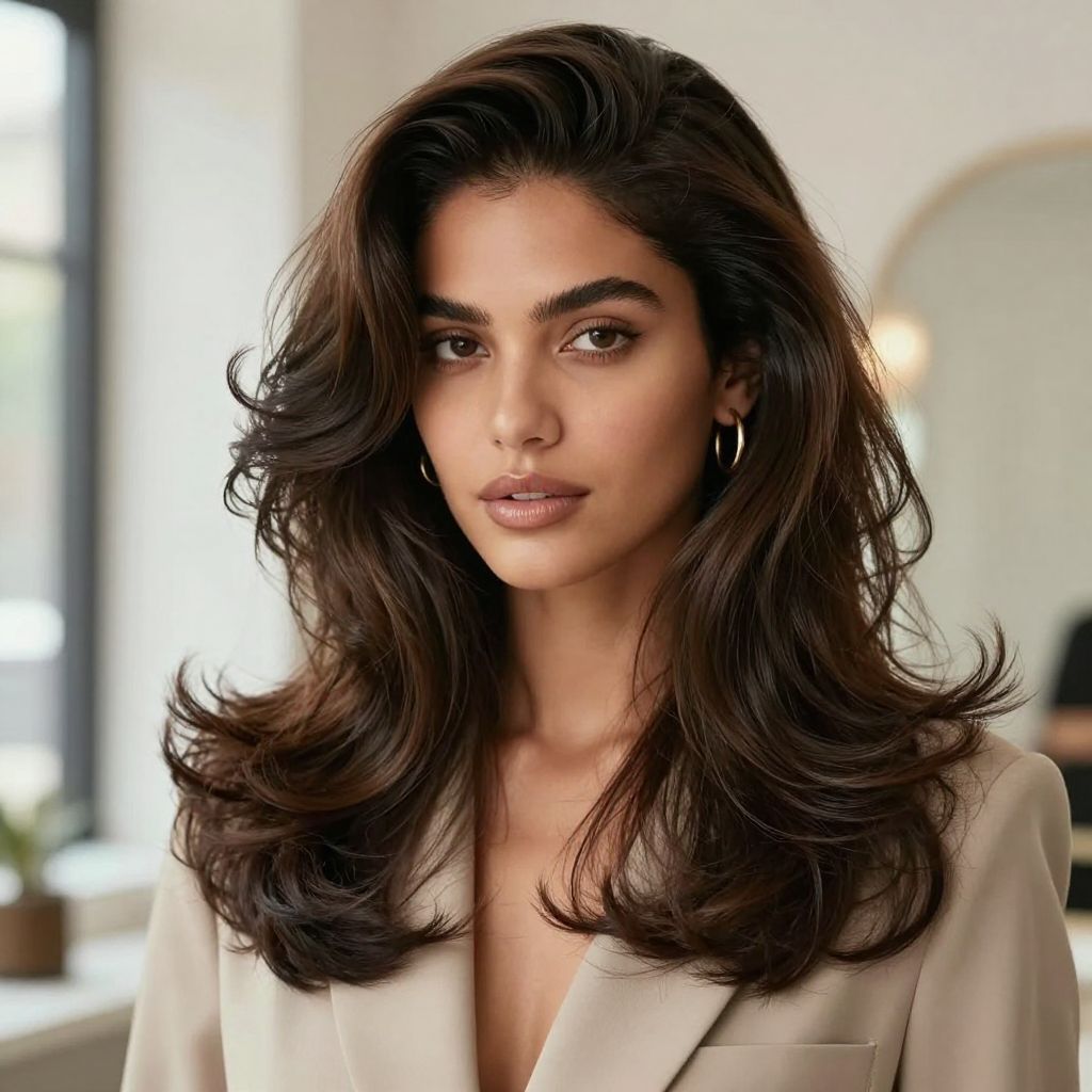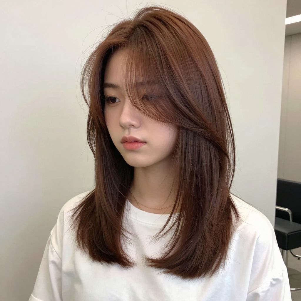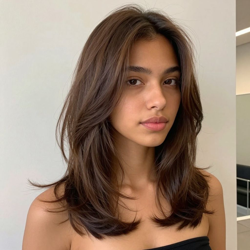 A soft layered lob gives your hair that perfect medium length vibe while keeping movement and bounce. It’s short enough to feel fresh but long enough to style in different ways.