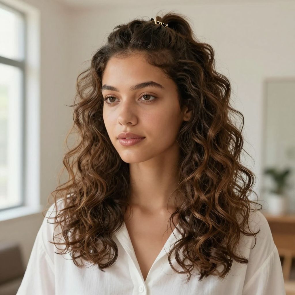 - Styling Method: Secure half with clip or band