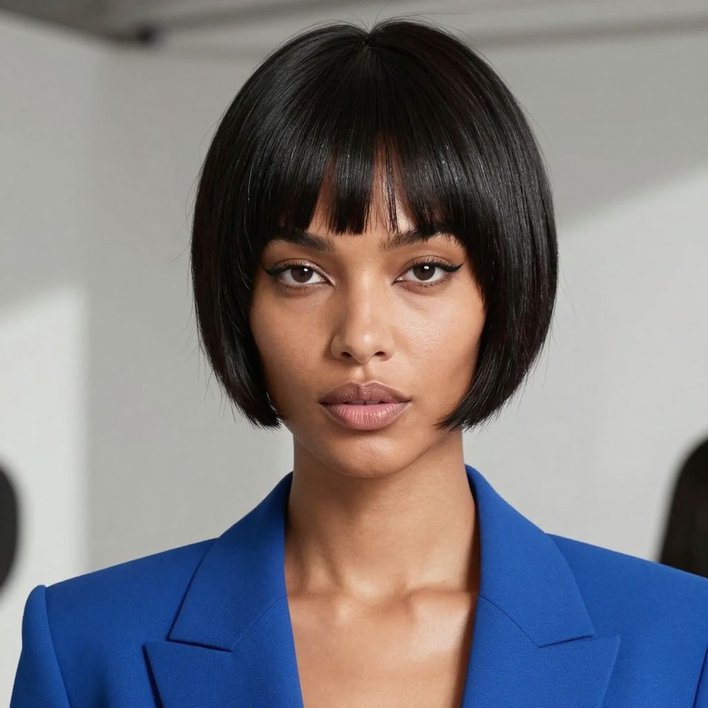 I love how it balances edgy and elegant in one cut. The clean lines pop even more with shiny black tones.