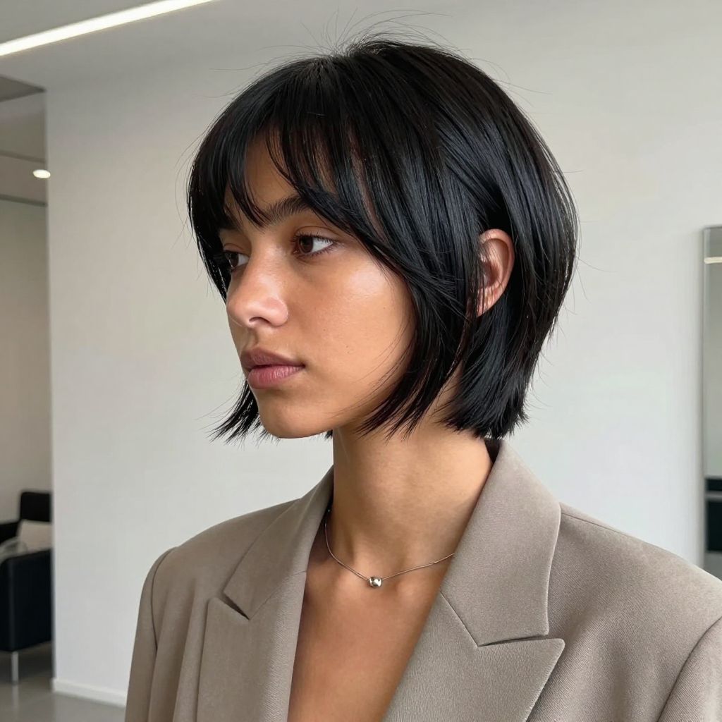 The asymmetrical bob adds flair with uneven lengths. One side slightly longer gives your whole look instant attitude.