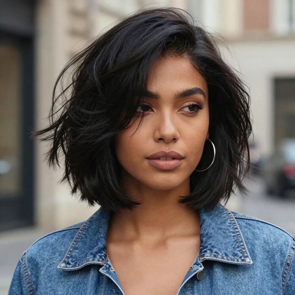 The textured bob adds playful movement to short black hair. It works magic on fine hair that craves volume, giving it a youthful and lively bounce.